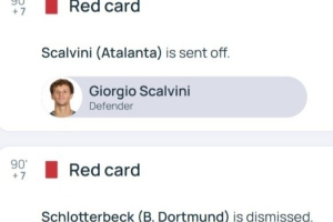 场下的斯卡尔维尼(首发出战被换下)和施洛特贝克(替补未登场)均因为抗议而染红,两人也都将因此停赛。由于多特已经被淘汰,施洛特贝克的停赛将到下赛季执行,而斯卡尔维尼的停赛则会在下一轮对阵阿森纳或者拜仁时执行。