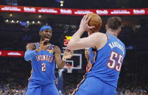体育资讯2月28日讯 NBA常规赛,雷霆主场127-121加时险胜掘金。