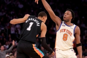 文班25分13篮板4封盖,有两球“晃飞唐斯/米罗直袭篮筐”的壮举,但那两球是尼克斯防守主旨的精髓: