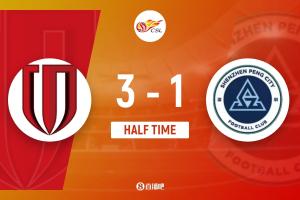 半场-蓉城暂3-1十人新鹏城 姜至鹏肘击染红 韦林顿血染赛场+破门