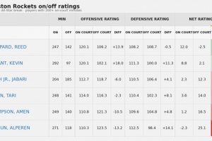 谢泼德自全明星后on-off值+14.5队内遥遥领先 KD+6.7 申京-27.4