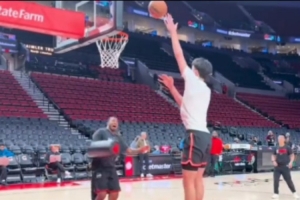 体育资讯2月8日讯 今日上午开拓者主场背靠背再战灰熊,赛前杨瀚森和助教练习了对抗下的勾手,此外小杨还在三分线外变向过人单打了助教一个,气氛比较轻松。