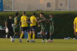 体育资讯02月11日讯 季前热身赛,浙江vs俄超球队罗斯托夫,罗斯托夫连续的大动作犯规,随后99号苏莱马诺夫报复性动作,与刘浩帆发生冲突,吃到红牌,双方爆发大规模冲突,比赛在进行了大概23分钟便宣布终止。