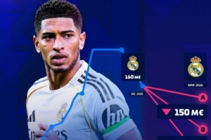 体育资讯3月12日讯 德转将在近期更新西甲球员身价,并预热皇马中场贝林厄姆身价将会下跌。