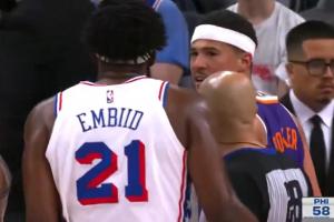 布克回头喷恩比德:“我打的全是球,尼格。全是球,尼格。”