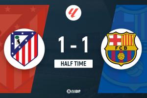 半场结束,巴萨暂1-1马竞。