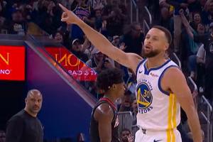 GIF-库里标志性超远三分拆炸弹