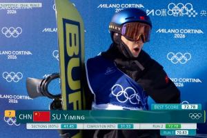 体育资讯02月15日讯 米兰冬奥会单板滑雪男子坡面障碍技巧预赛第2轮,中国选手苏翊鸣获得72.78分,超过他此前第一轮的成绩70.83分,目前暂列第7位。
