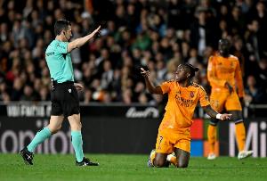 体育资讯2月18日讯 据西班牙《世界体育报》报道,西班牙裁判索托在巴萨客场1-2负于赫罗纳比赛中的执法引发了前者的不满,他被认为多次做出不利于巴萨的判罚。